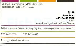 Cuckoo international (mal) sdn bhd (hq) 16th floor, menara bangkok bank, laman sentral berjaya, no.105,jalan ampang, 50450 kuala lumpur.